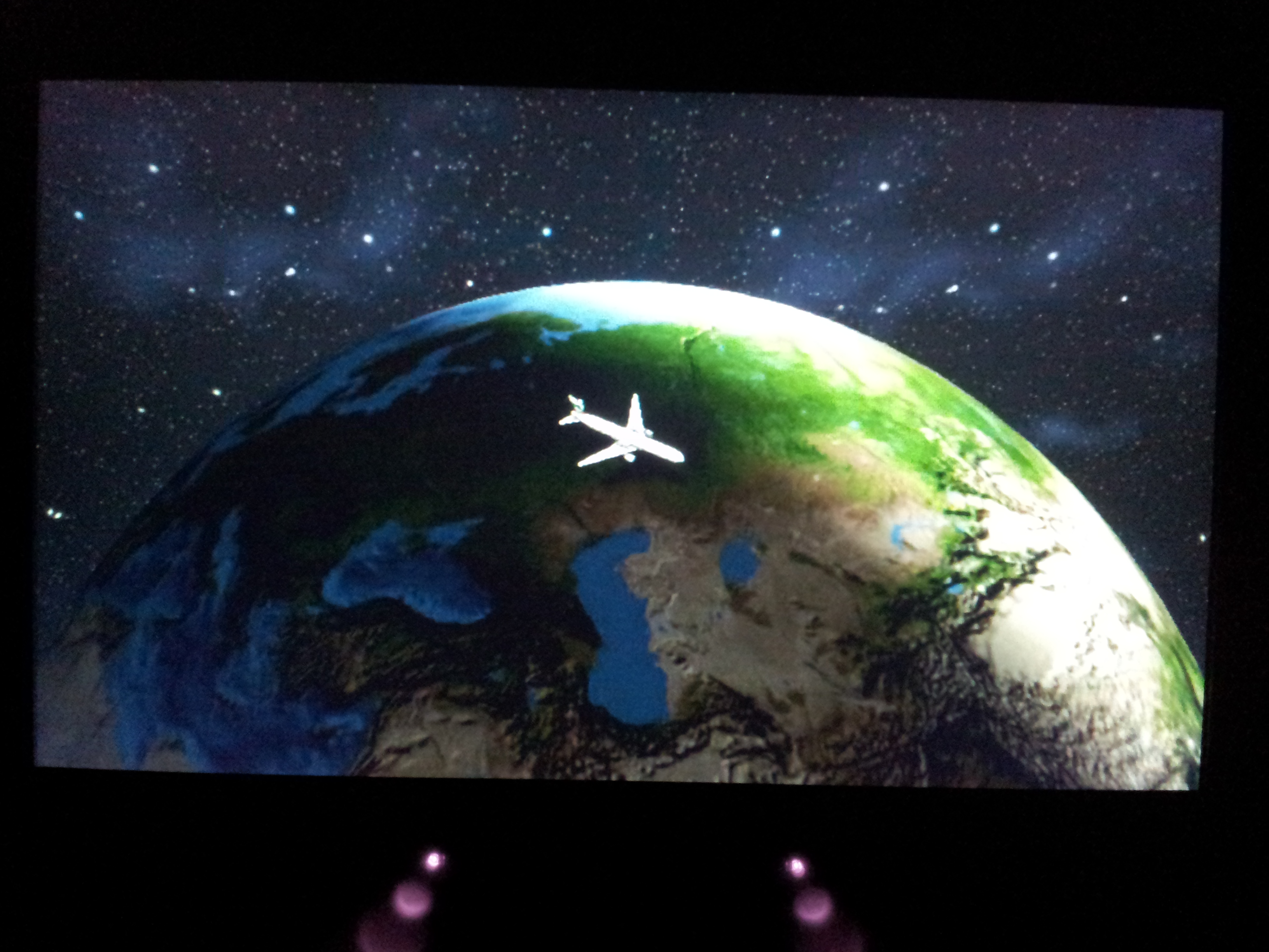 Ouverture pour l’embarquement, je monte dans l’avion (un Boeing 777) de la compagnie Cathay Pacific (compagnie hong-kongaise). Je me retrouve bien sur assis à côté de chinois (ou philippins ? ou malaisiens ? ou japonais ? je leur ai posé la question mais je n’ai rien compris de leur réponse). Bref, l’avion décolle enfin ! C’est parti pour 11h de vol. Arrivée prévue à Hong-Kong le lendemain à 15h heure locale (ou 9h heure française). Ca pique. Voici quelques photos prises pendant mon vol…