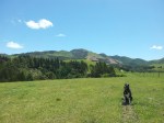 Lundi 7/12, 13h30. Après avoir passé 1 jour et 1/2 à ratisser, je pars avec Birdy en direction du Mount Admiral. C’est le haut sommet qui trône fièrement derrière la maison. De là-haut, Patrick m’assure une vue imprenable sur les environs, un panoramique à 360°C sur les champs, la mer, les montagnes et toute la vallée. C’est parti pour 4h30 de rando A/R !